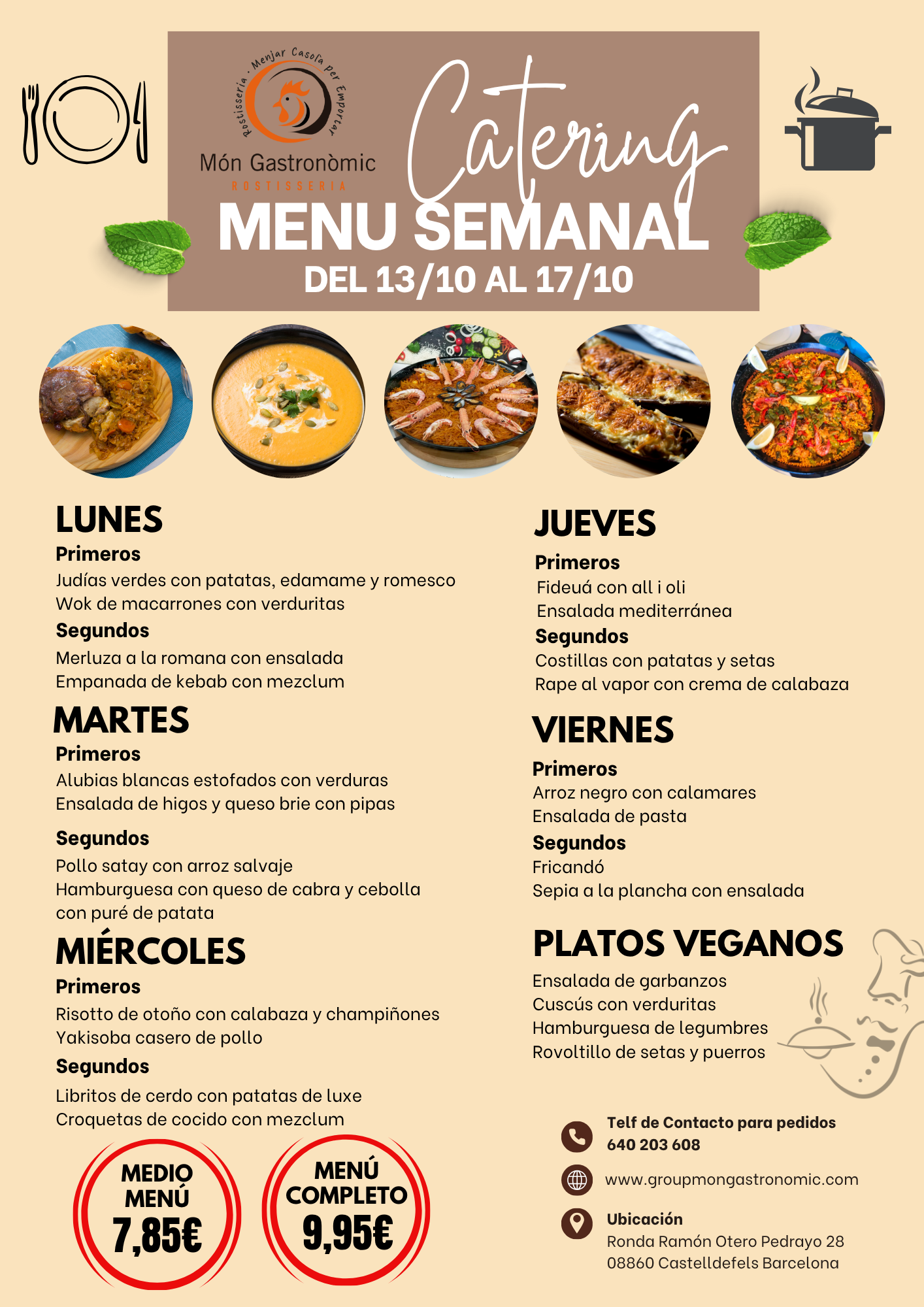 Además te podemos llevar el menú allá donde estés, si trabajas en la empresa, también te lo podemos llevar.
